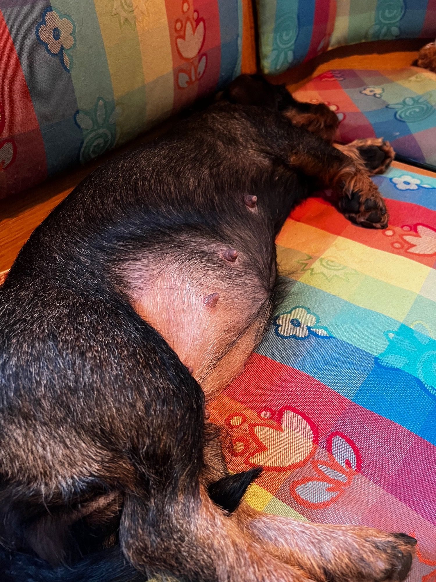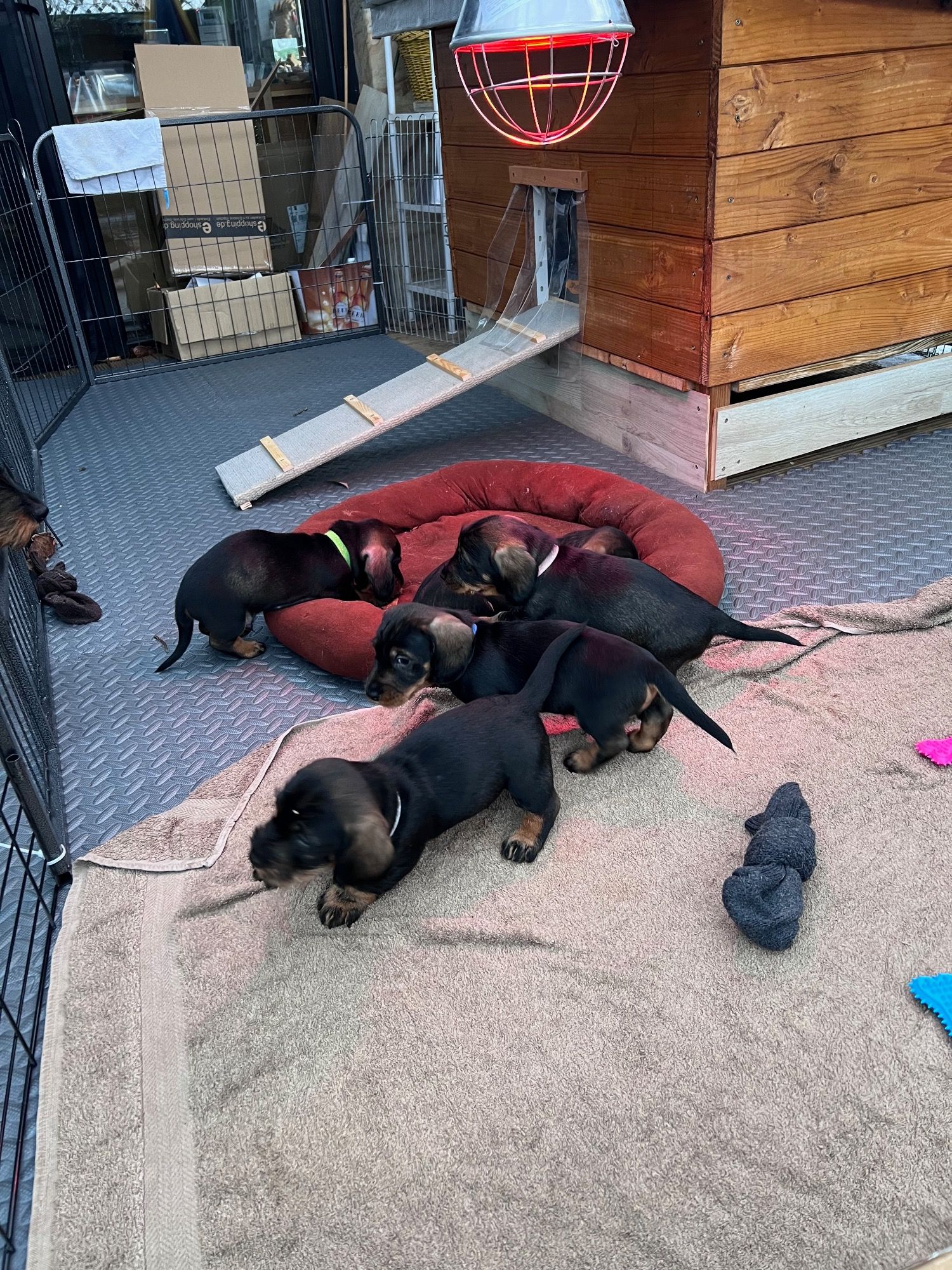 In knapp vier Stunden hat Olina fünf Welpen geboren. Drei Rüden und zwei Hündinnen in dunkelsaufarben.